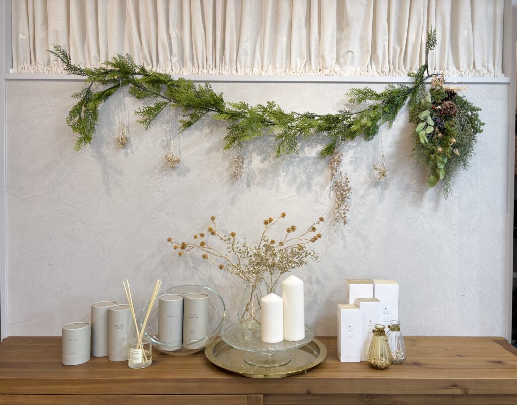 一番右のスワッグはお客様が作ってくれた手作りのスワッグです。