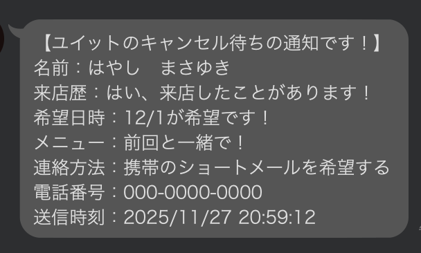 こちらから申請いただければ、僕のほうに通知されますので、空きがでたり予約の調整をして、こちらからご連絡を差し上げます!
